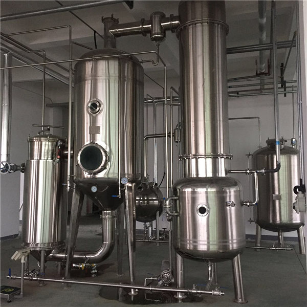 常熟碳酸氫鈉結(jié)晶蒸發(fā)器設(shè)備適用于發(fā)泡性物料蒸發(fā)濃縮,由于料液在加熱管內(nèi)成膜狀蒸發(fā),即形成汽液分離,同時(shí)在效體底部,料液大部份即被抽走,只有少部份料液與所有二次蒸汽進(jìn)入分離器強(qiáng)化分離,料液整過程沒有形成太大沖擊,避免了泡沫的形成。