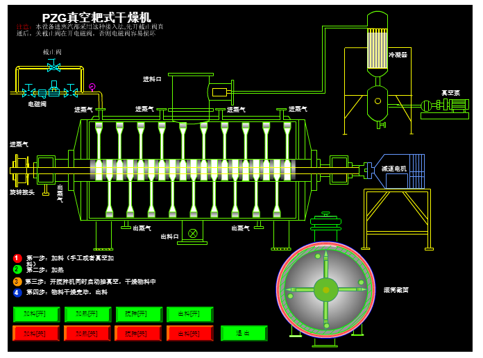 真空耙式干燥機操作簡單,進出物料方便,大幅度減輕了工人勞動強度,同時也減少了物料在干燥過程中受到的環(huán)境污染,提高了產(chǎn)品質(zhì)量,符合藥品管理規(guī)范“GMP”的要求。